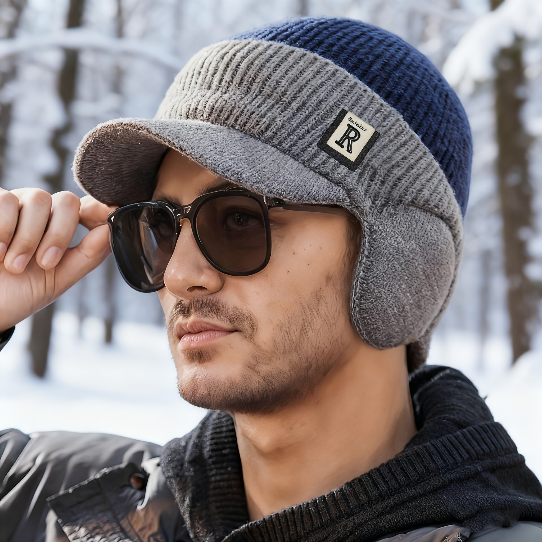 TEMU 남성용 겨울 니트 귀마개 모자, 야외용 보온 두꺼운 비니