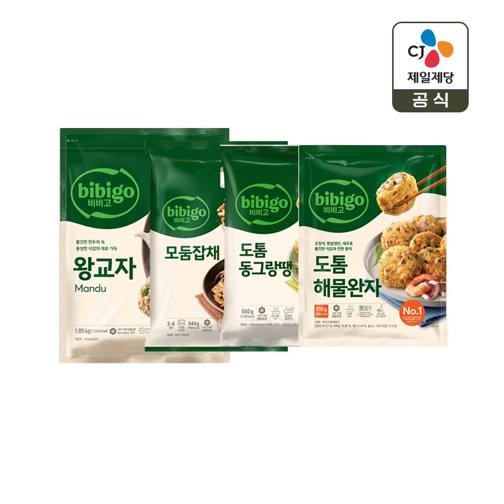 비비고 왕교자1.05kg x1+잡채644g x1+동그랑땡560g x1+해물완자510g x1