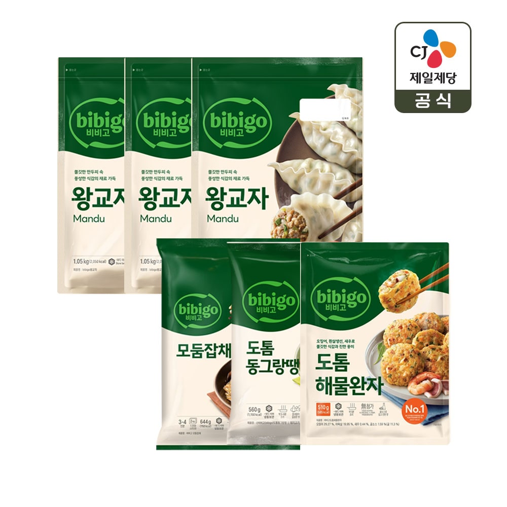비비고 왕교자1.05kg x3+잡채644g x1+동그랑땡560g x1+해물완자510g x1