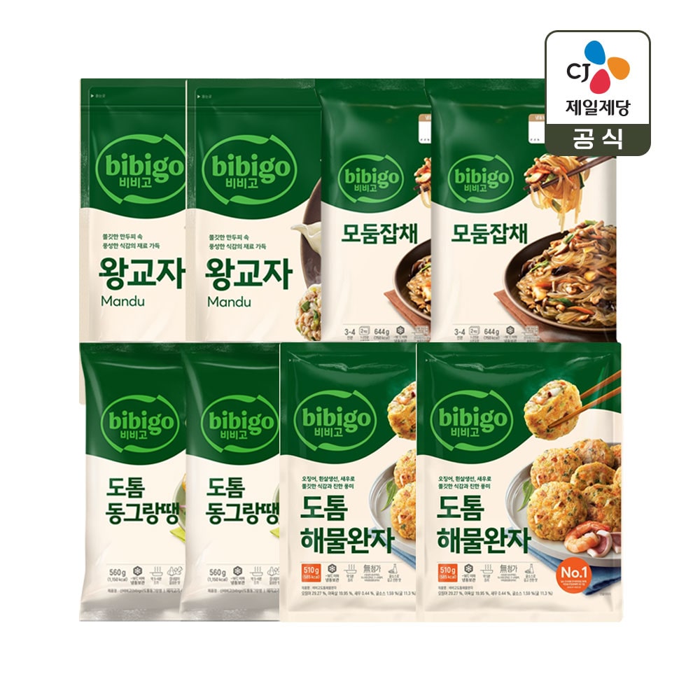 비비고 왕교자1.05kg x2+잡채644g x2+동그랑땡560g x2+해물완자510g x2