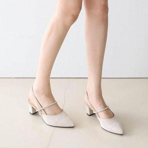 [셀러허브_여성트랜드패션]여자 구두 슬링백 뮬 스트랩 비즈포인트 미들힐 국산
