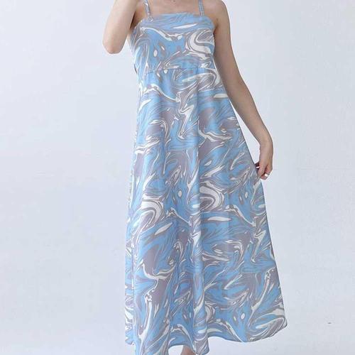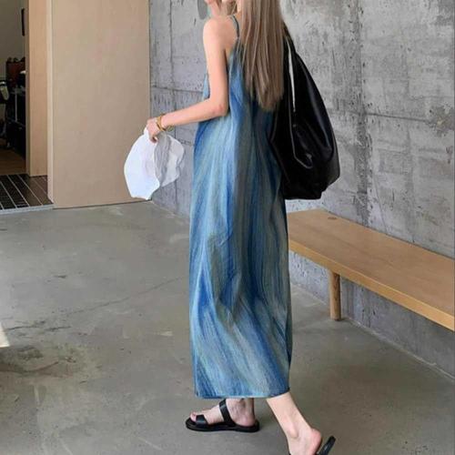 [모노무드]모노무드 여성 나염 데님 V넥 끈나시 롱원피스 1P 바캉스 비치