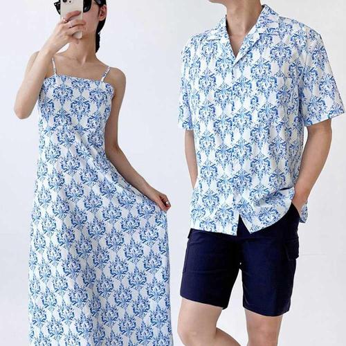 사이공 데이 휴양지 커플룩 신혼여행 여성 여름 바캉스 롱원피스 허니문 하와이안 비치룩 시밀러룩 반팔셔츠 세트 휴가 여행용 베트남 해변옷