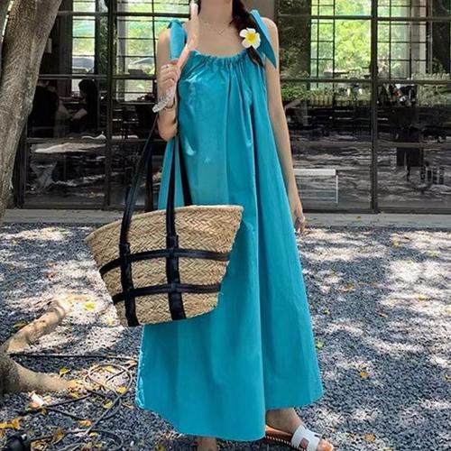 [셀러허브_여성트랜드패션]ONM 여자 마림 블루 색상 비치룩 휴양지룩 끈나시 원피스