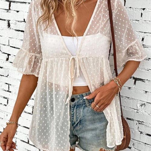 [오너클랜]인기상품 여름 비치가디건 시스루 커버업 레이스 반팔 자외선차단 [WFIO54I_251107]