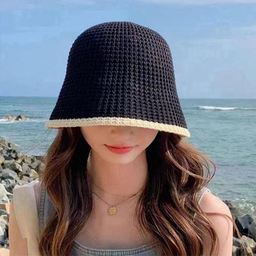 배색 니트 버킷햇 여름 데일리 비치모자 WFKNAQZ