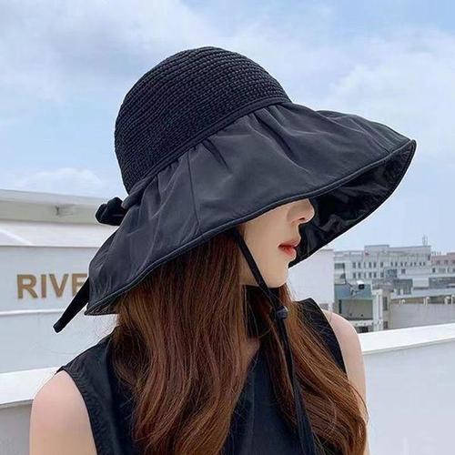 [에이치플러스몰]검은리본 밀짚모 SL 여성 비치모자 라탄모자