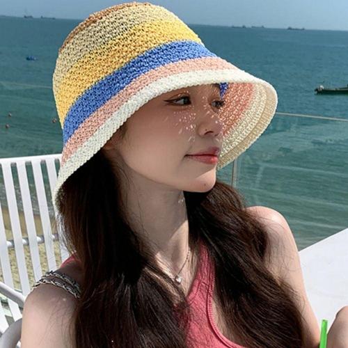 여성 2컬러 레인보우 여름 니트버킷햇 썸머 비치모자 WFH8VWY