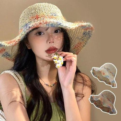 [에이치플러스몰]끝단 버킷햇 시원한 비치캡 통기성 라피아 비치 라탄