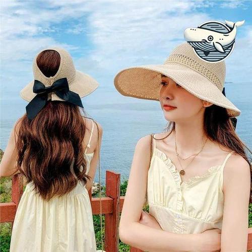 [에이치플러스몰]스타일리시 리본 비치캡 여름 모자 편안한 햇빛