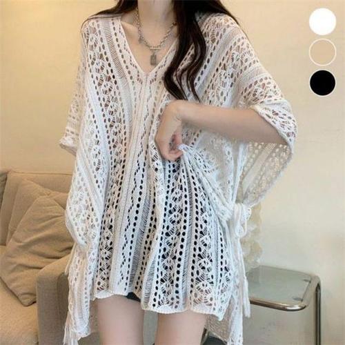 [에이치플러스몰]그물 인기 비치커버업 여름수영복 펀칭 감성 니트 비