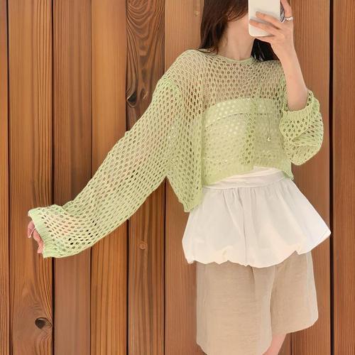 FANSYLI 여성 카디건 봄여름 얇은 니트 패션 숏 브이넥 펀칭 카디건 심플 루즈핏 에어컨 재킷 자외선 차단 재킷 XR2512D30
