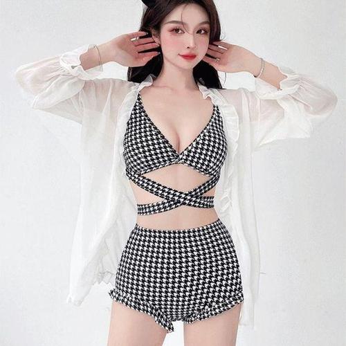 [에이치플러스몰]비키니 가디건세트하운드체크