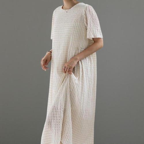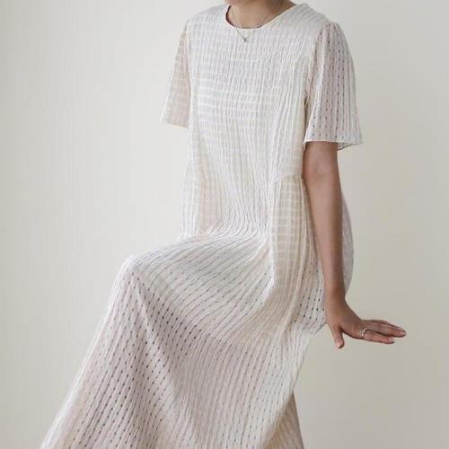 [신상오픈런]여성용 빅사이즈 스트라이프 펀칭 임산부 반팔 긴 원피스 (38767333)