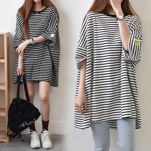 [셀러허브_여성트랜드패션]ONM 여성 스트라이프 박시 반팔 티셔츠 빅사이즈 캐주