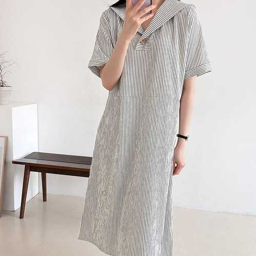옷자락 / 여자 휴양지룩 스트라이프 세라카라 반팔 빅 롱원피스