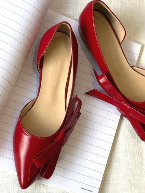 [정상가 59000원] 슈즈 팔레트 리본 유광 플랫슈즈