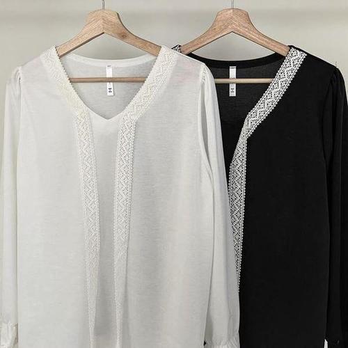 [셀러허브_여성트랜드패션]403Q736S 여성의류 X 빅사이즈 레이스롱리본블라우스