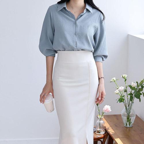 언발 됫프릴 롱셔츠 셔링 포인트 패션 와이셔츠 남방 봄여름 캐주얼 블라우스