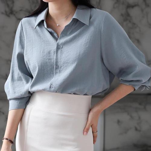 [LIONHU] 빅사이즈 뒷포인트 루즈핏 가오리핏 박시 블라우스 긴팔 셔츠 간절기 데일리룩