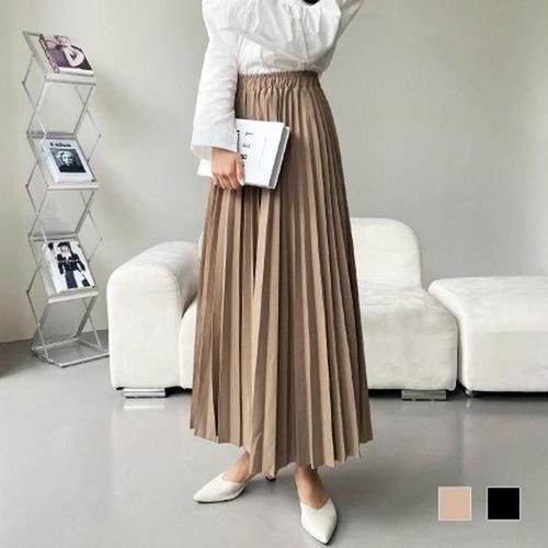 [신상오픈런]여자 핀턱 플리츠 빅사이즈 뒷밴딩 가을 스판 롱스커트