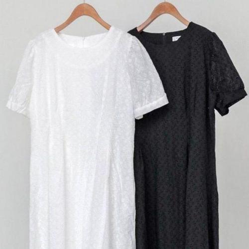 오르난 여성 빅사이즈 펀칭 레이스 반팔 원피스 R2166