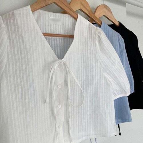 307P700S 빅사이즈 퍼프 블라우스 브이 펀칭