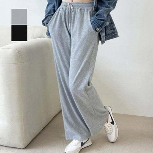[셀럽하우스]플리츠 GFNP9901 여성 빅사이즈 골지 와이드 밴딩 팬츠
