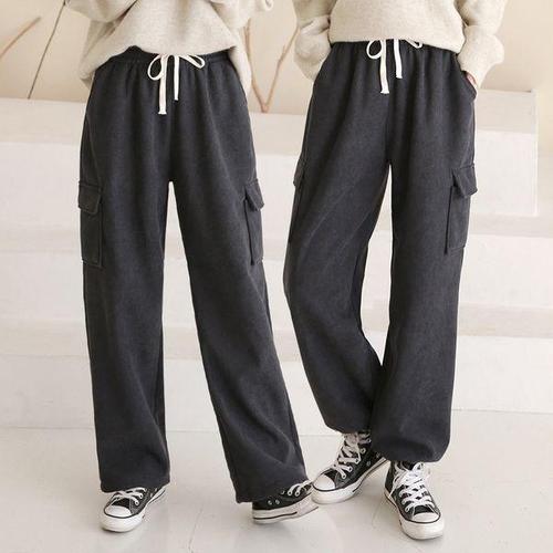 [유야]밑단 스트링 기모 골덴 카고 와이드 조거 팬츠 코듀로이 트레이닝 밴딩 바지 -PN0265H- 빅사이즈 ..