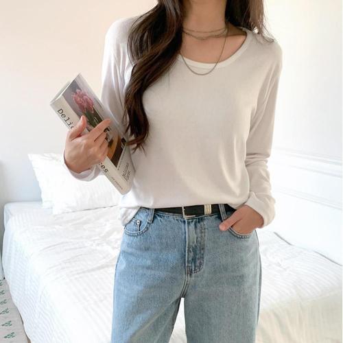 여성 베이직 U넥 빅사이즈 민무늬 내의 티셔츠