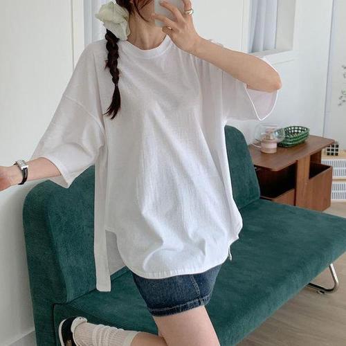 여성 빅사이즈 티셔츠 박스 반소매 내의 티