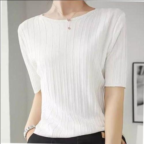 [에이치플러스몰]빅사이즈 빅 캐주얼 골지 얇은 필수템 반팔 니트 여성
