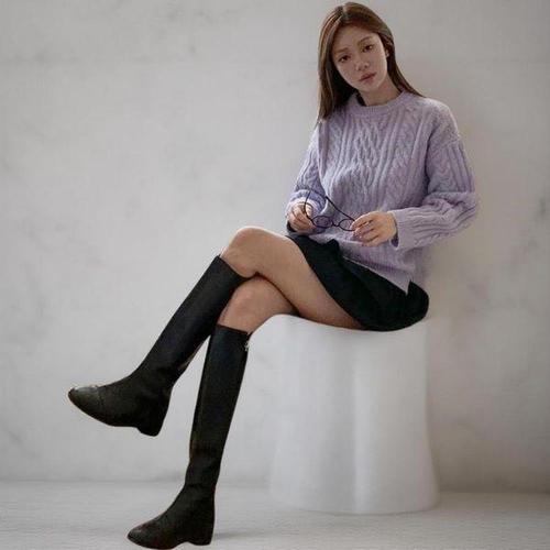 [다잇템]여성 빅사이즈 일상용 U넥 꽈배기 니트