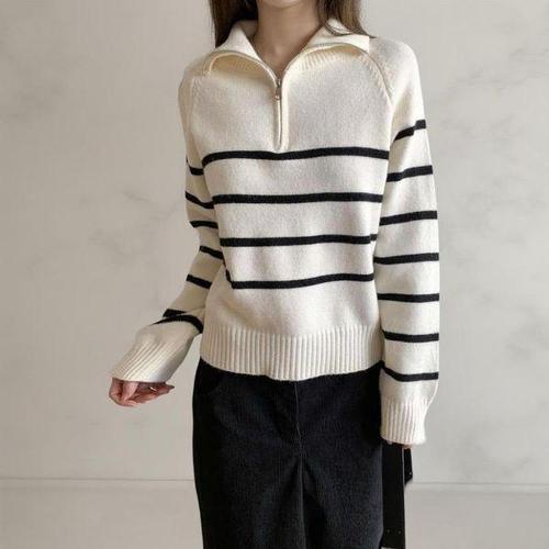 [다잇템]여성 베이직 빅사이즈 단가라 하프집업 니트