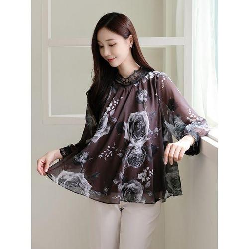 [디얼마미]잔꽃 열매 레이스 블라우스 /마담 미시 중년 여성 빅사이즈 40대 50대