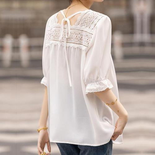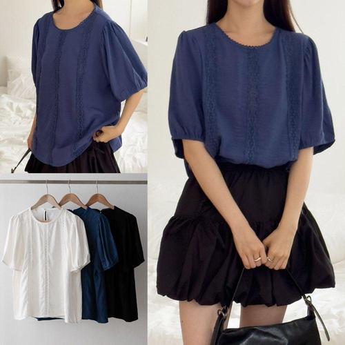 [신상오픈런]여성 레이스 반팔 꽃무늬 빅사이즈 무지 블라우스