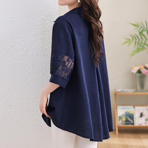 [퀸이즈] [~99까지]빅사이즈 데트 소매패턴 레이스넥 블라우스