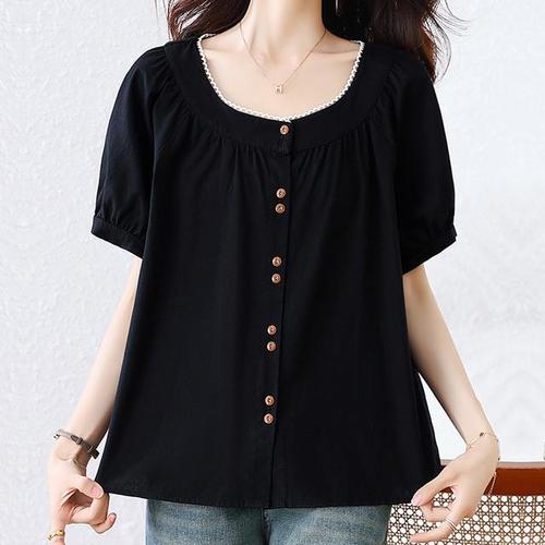 [블랙퀸]빅사이즈 레이스넥 더블버튼 블라우스 blk003638