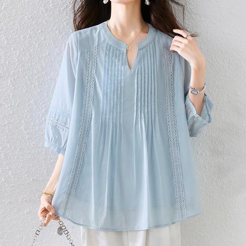 [에이치플러스몰]쉬폰블라우스 캐쥬얼 레이스 여자셔츠코디 빅사이즈