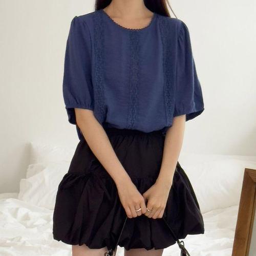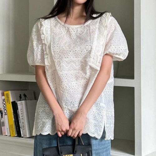 [다잇템][다잇템] 여성 블라우스 U넥 반소매 레이스 벌룬 빅사이즈_22182756_588872