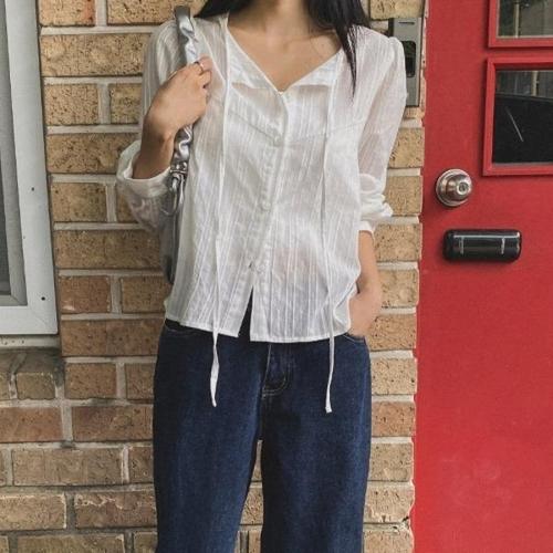 [다잇템_패션]여자 빅사이즈 레이스 리본 남방 블라우스