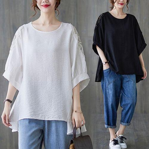 [다잇템][다잇템] 여성 레이스 빅사이즈 프릴 밑단 면원단 블라우스_20622615_588872