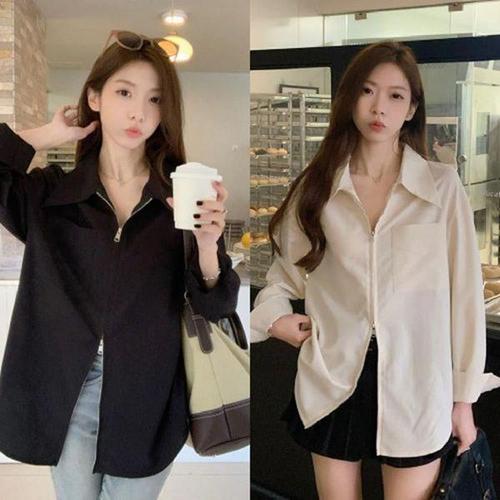 [에이치플러스몰]루즈핏 가을 레이스 여자셔츠코디 블라우스 빅사이즈