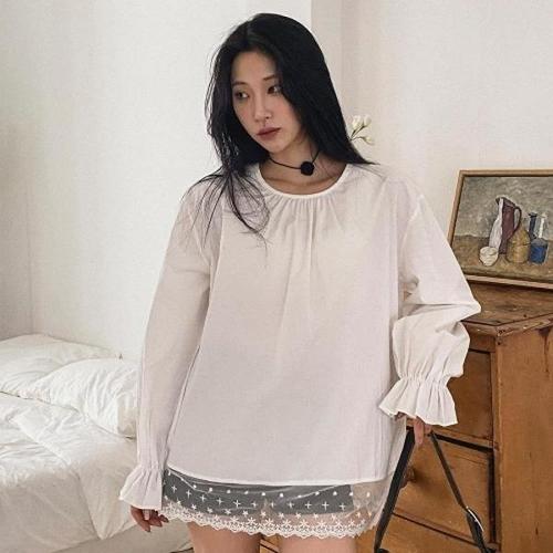 [다잇템][다잇템] 여자 어텀 환절기 패턴레이스 빅사이즈 비침 블라우스_18496474_588872
