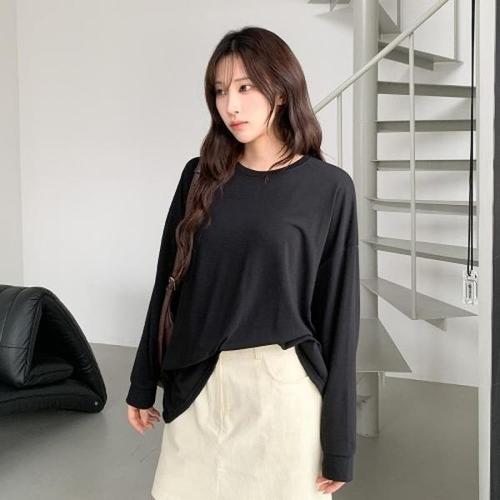 오스틱니 110kg까지 빅사이즈 1+1 날씬해보이는 라운드 레이어드 맨투맨 여성 봄 가을 편한 무지 트임 심플 루즈핏 이너 bf 롱티셔츠 롱티 긴팔티 간절기 맨투맨티 데일리 풀오버
