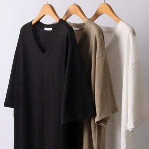 1+1 슬라브 브이넥 반팔 티셔츠 여성 여름 반팔티 여름티셔츠 루즈핏 데일리룩 이너티 상의 면티 브이넥 이너 심플 기본티 WAWAMIYA