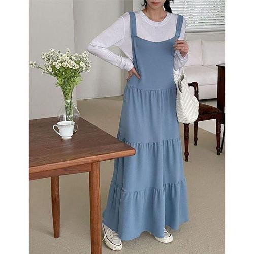 [에이치플러스몰]빅사이즈 멜빵 캉캉 롱 원피스 ar24106