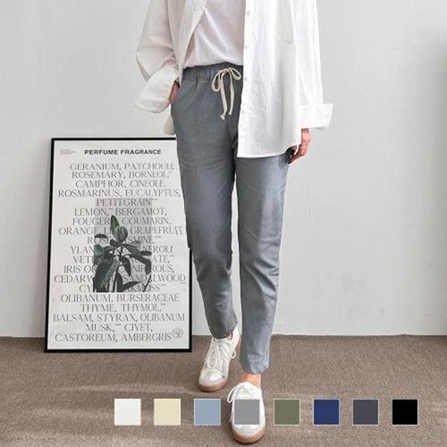 [에이치플러스몰]여성바지 일자 긴바지 코디 밴딩 배기 빅사이즈 면
