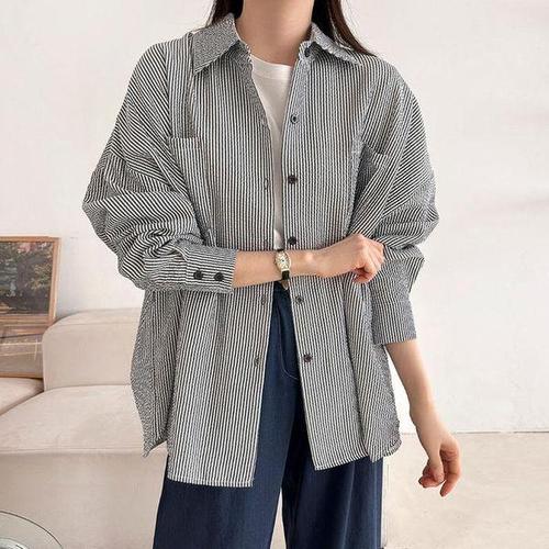 [셀러허브_여성트랜드패션]빅사이즈 512 주름스트라이프포켓셔츠 DART784