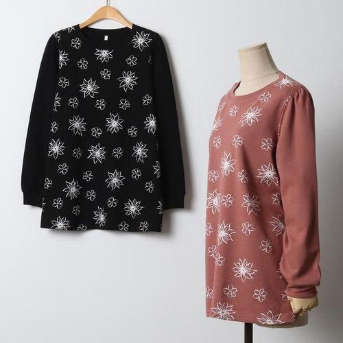 [셀러허브_여성트랜드패션]빅사이즈 512 코튼플라워나염긴팔티 DMNJ461